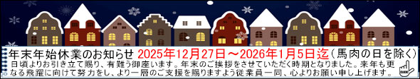 2025年11月24日掲載 今月の馬肉の日は11月29日(土)です。皆様のご来店をお待ちしております。